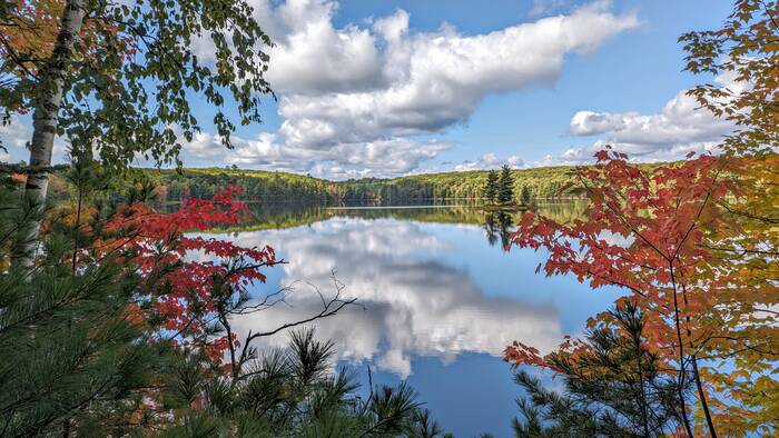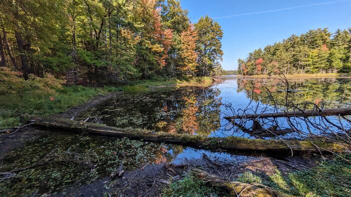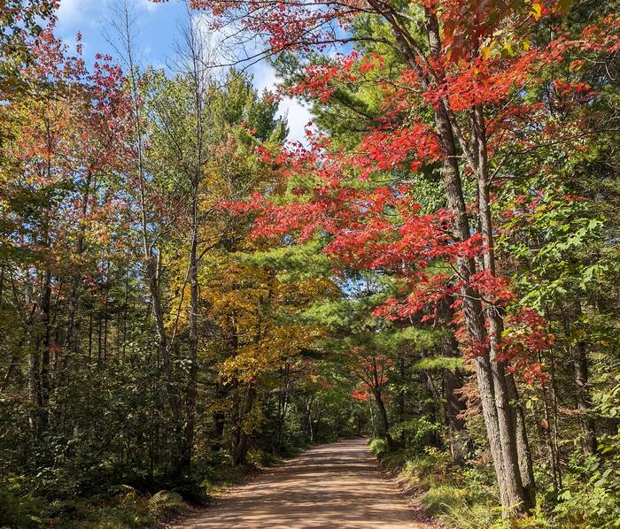 Because the Northern Highland-American Legion State Forest has so many lakes, Julie wanted to see as many of them as possible (at least within, say, a 5 or 6-mile radius). The normal way to see lakes is probably via canoe or kayak, but since we don't have either of those, we took to the roads and trails.