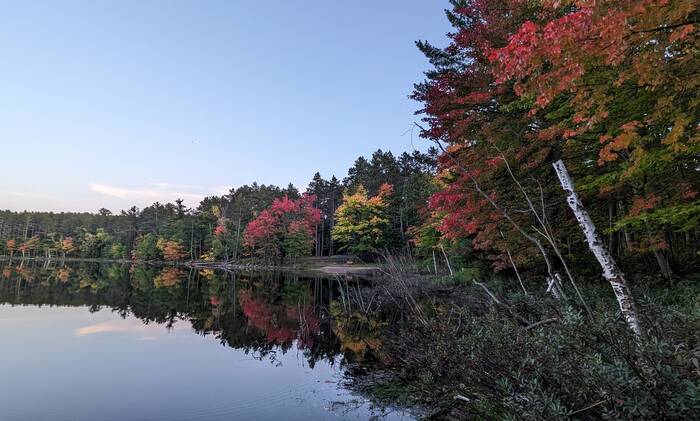 The last evening brought nice weather, and we enjoyed watching the slowly fading colors surrounding Starrett Lake from our deck.