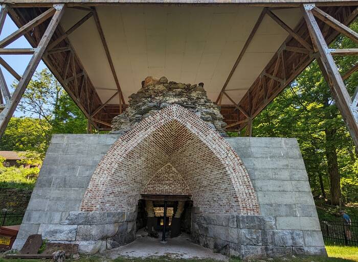 After the iron works closed its doors in the early 1900s, the original ore pit was abandoned. It eventually filled with spring water and subsequently became a popular swimming spot. It is still used for that purpose in the state park today.