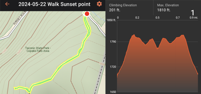 The next morning, we hiked the short trail to Sunset Rock. It was a reasonably pleasant trail, and it was only 1/2 mile long. We decided that the payoff was commensurate with the effort.