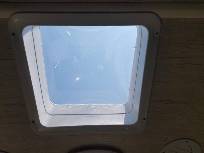Couple of items finished up - cut a piece of plastic to double insulate the sky light and mounted it up in the trim piece.