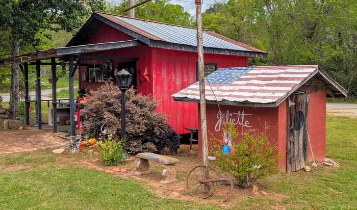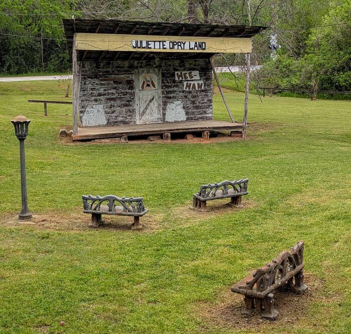The next day, we checked out the small town of Juliette where the movie "Fried Green Tomatoes" was filmed. Much of the town consists of the original movie set buildings and false fronts that have since been added onto and converted into touristy businesses. The antique shops were kind of fun to browse through (probably not so much for Rick), but we got the sneaking suspicion that much of the merchandise was procured from the local Goodwill.