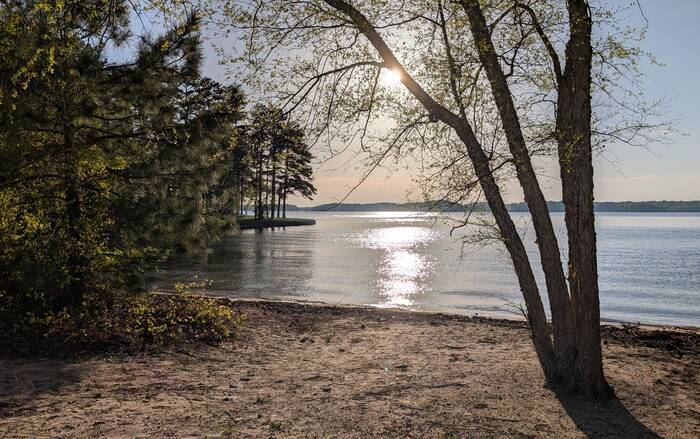 The weather cooled substantially during our stay here. A couple of the days barely hit 60, but it was generally sunny. When it wasn't windy, it was quite pleasant to sit outside and take in the lake view. We didn't do much here except walk the campground loops each day and admire the scenic lake. This may be the only campground we have been to where every site is lakeside. It sure would be a great place for kids in the summertime, as there were many sandy coves with invitingly clear water in which to swim, float, or fish right from your campsite. Boating is probably really popular in the summer as well.