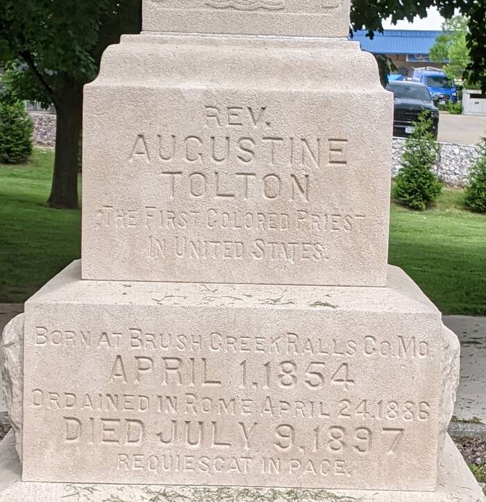 As a bonus, we were able to stop at St. Peter's Cemetery in Quincy where Fr. Augustine Tolton is buried! It feels odd how the little cemetery is penned in by modern businesses such as KFC, a movie theater, and the like.