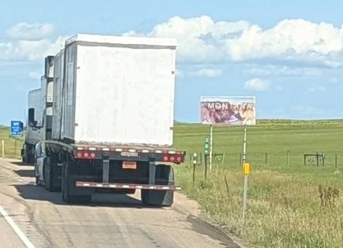Kind of a bad picture, but these trucks were blocking a good view of the Montana welcome sign