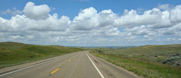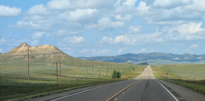 A very straight road in Wyoming