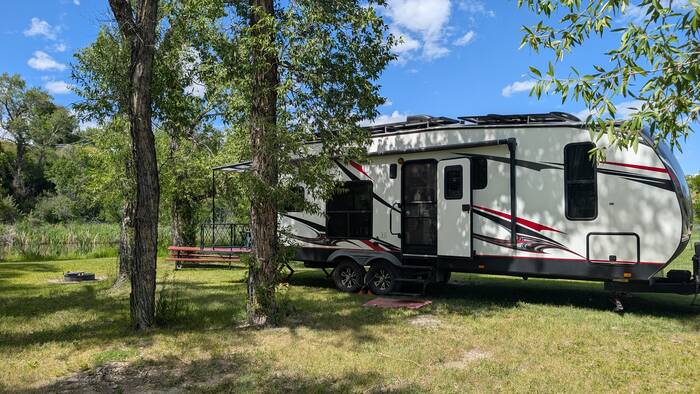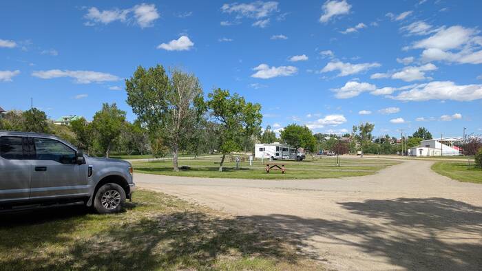 Our next stop was for four nights in the tiny town of Harlowton. It was a bustling railroad town in the early to mid 1900s, but the bankruptcy of the railroad in 1980 led to a general decline of the town. There are less than 1000 residents currently, about a half (or a third, or less, depending on who you ask) of its original population. We enjoyed a quiet stay at the small city park which was within easy walking distance of the town center. We chose a non-electric site that backed up to a branch of the Musselshell River.