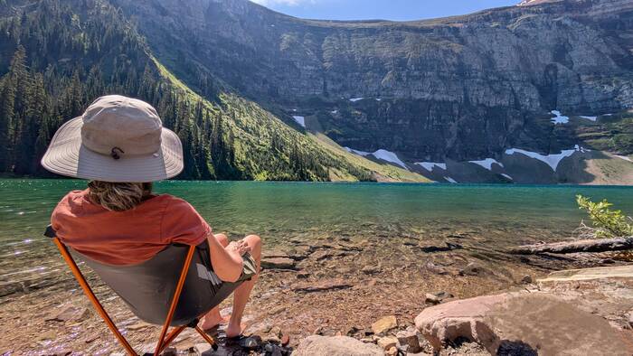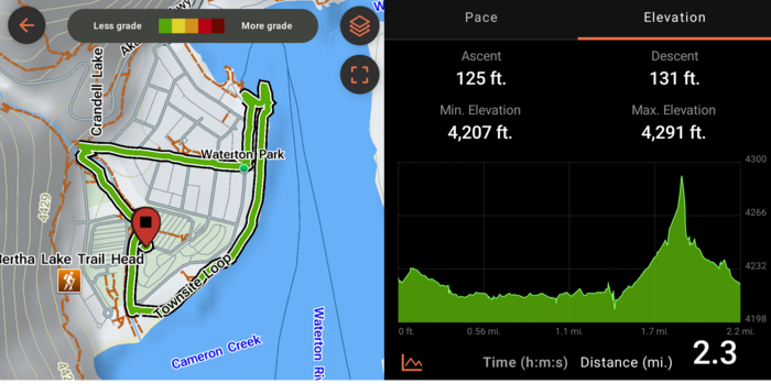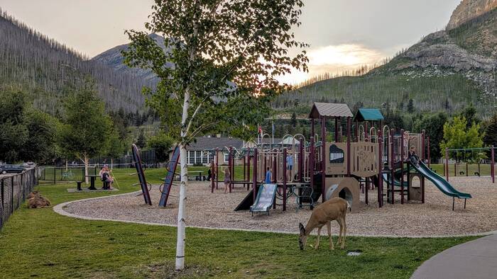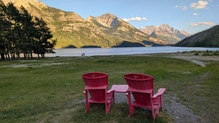 Our campsite, while not private, was nestled right in the mountains and was close to the shore of scenic Upper Waterton Lake. The campground was also conveniently located just outside of the little town of Waterton. After our weekly family cards night, we took a walk on the Townsite Loop Trail and got some ice cream in town, since it stays light out past 10 pm here at this time of year.