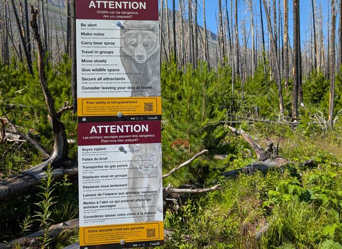 This sign gave the impression that bears speak English and cougars speak French. (Or is it that bears eat English speakers and cougars eat French speakers?) 😉