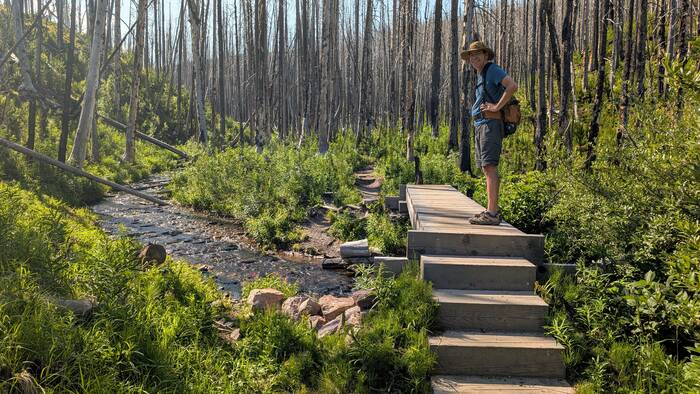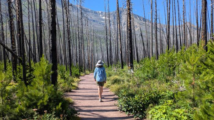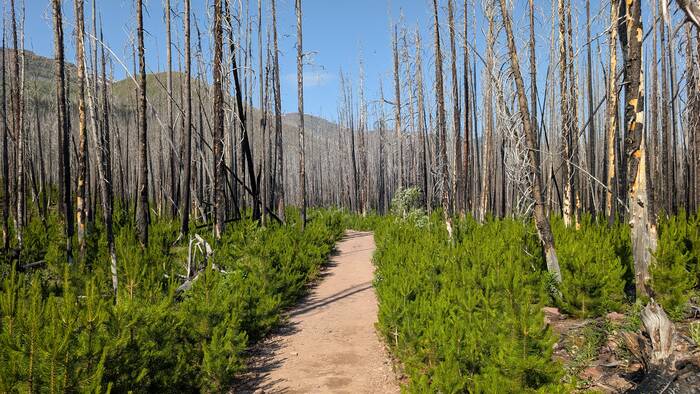 While burned forest with new growth is interesting and has a unique beauty, we decided after a few miles that we prefer forest scenery that hasn't burned