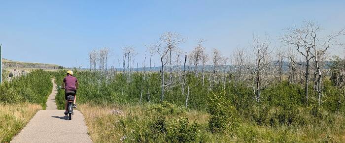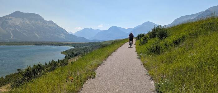 That afternoon, we rode the Kootenai Brown Trail, a really nice paved multi-use trail. While it was an out-and-back trail, the scenery going "out" had views away from the mountains, where the "back" had views toward the mountains. So, it really didn't feel like we were backtracking.