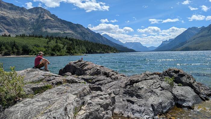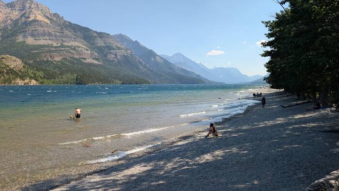 We stopped to sit for a while on the secluded and breezy shores of Lower Waterton Lake--we couldn't see another living soul