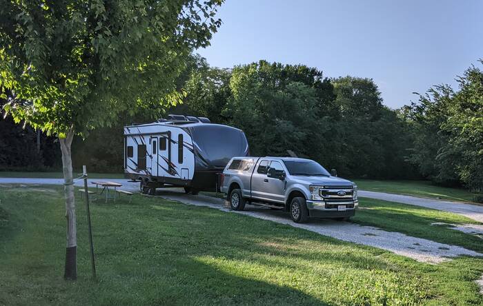 I thought by taking this picture, it would make us feel smaller in comparison with the semis. I kinda was expecting there to be a more dramatic difference, though. I guess our trailer and truck are pretty big.