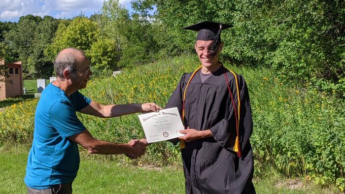 Alan gets a "proper" graduation ceremony at Lebanon Hills Regional Park campground