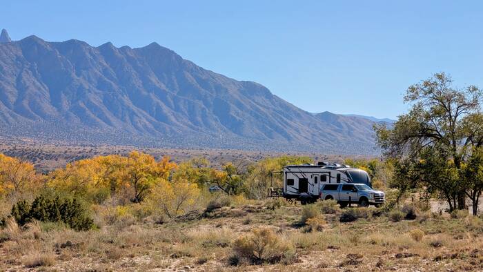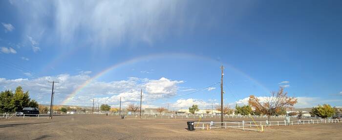 Our travel day was sunny, but we got rained on three times: once when we were taking down, once en route, and once while we were setting up. Through it all, the sun shone brightly. Each shower was relatively brief, and it was thankfully our only rain during our week-long stay in Albuquerque (or "ABQ" as the locals say).