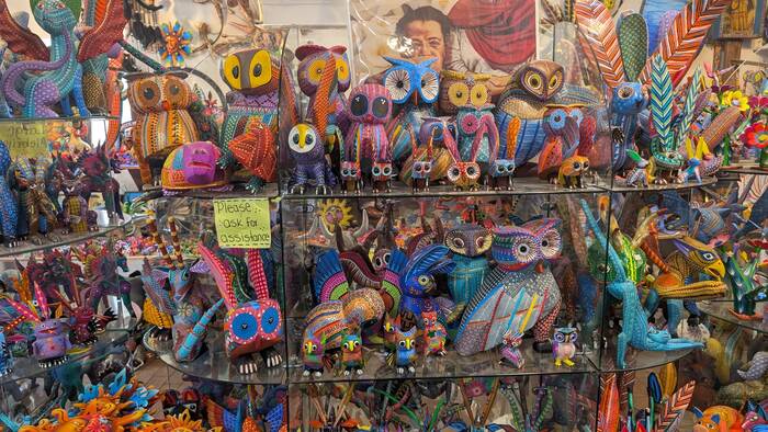 We liked the whimsical wooden animal art for sale. Alas, no room in the camper for such things!