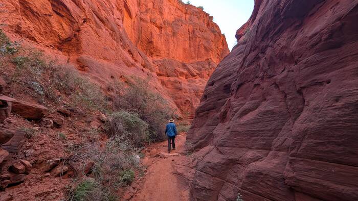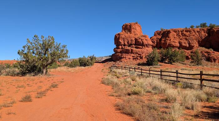 The aptly named Red Rocks trail is on Native American land. We ended up paying $12 each (plus tax) to walk the 1 1/2 mile (round trip) trail. The price seemed a little steep, but it probably cuts down on the crowds.