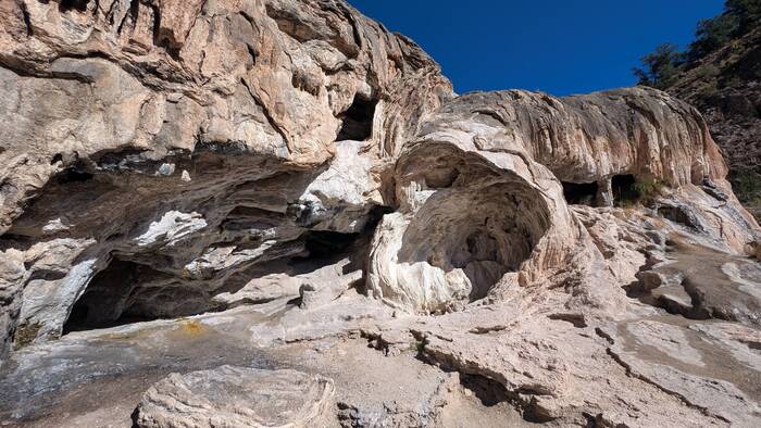 This unusual travertine rock formation by the side of the road is called "Soda Dam". Note the waterfall hiding inside.