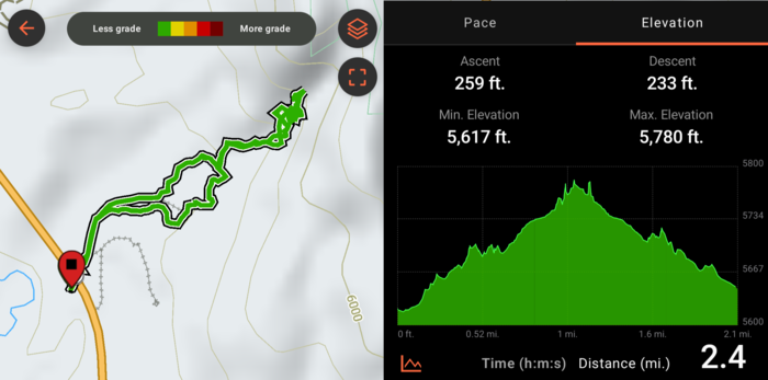 The GPS got a little fritzy in the slot canyon, so the recorded distance is not quite accurate.