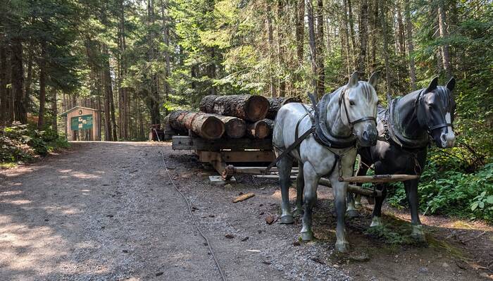 The logs were hauled on sleds (in the wintertime) by horses