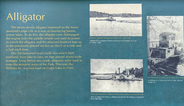 In the spring, logs were transported across lakes with a boat called an "alligator"