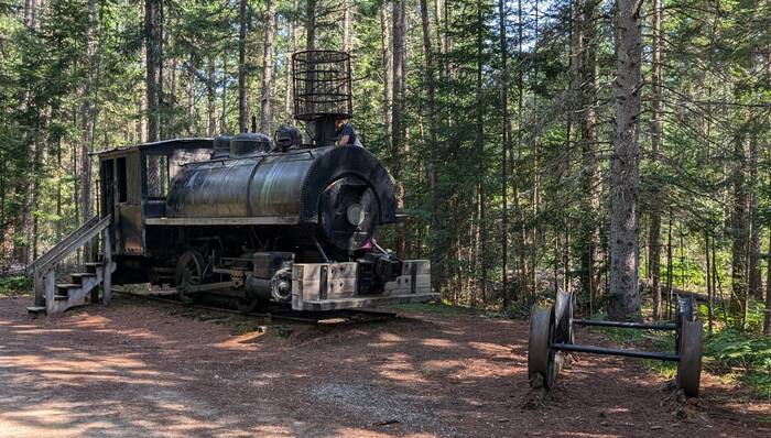 On Sunday, we drove to the Logging Museum within the park. We were pleasantly surprised how well done it was. The exhibit experience started with a 15-minute movie of the history of logging in the land that is now Algonquin Provincial Park, followed by a 3/4-mile interpretive trail tracing this history with old buildings, equipment and other artifacts from the logging days.