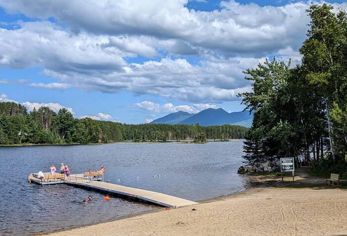 The campground beach with nice diving dock