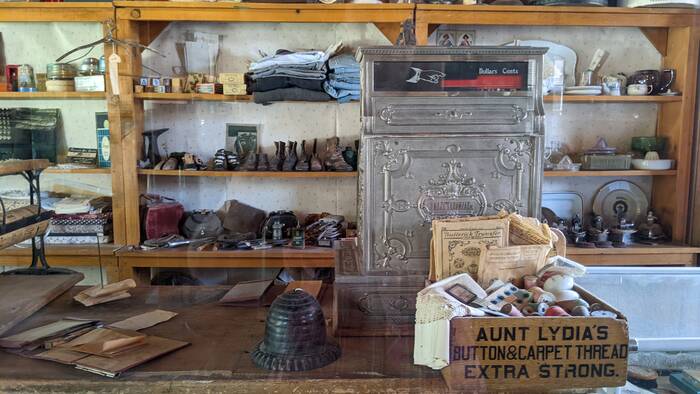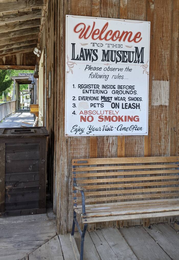 The museum was the highlight of the day (followed by the very good sandwich and pot pie we had at Schat's). The town of Laws formed in the 1880s, surrounding the railroad depot which mostly serviced the many mines in the area. The railroad, in operation until the early 1960s, also provided transportation to the local population until the establishment of roads throughout the area. Now the town pretty much consists of this museum, comprised of many historic buildings and artifacts--most of which were moved here from other locations.