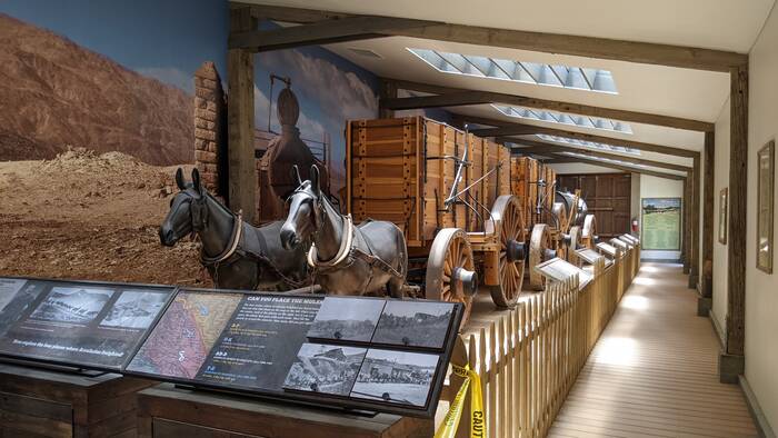 An entire building was dedicated to the 20-mule teams that transported many tons of borax. A group of local craftsmen recreated this mule wagon to be as authentic as possible.