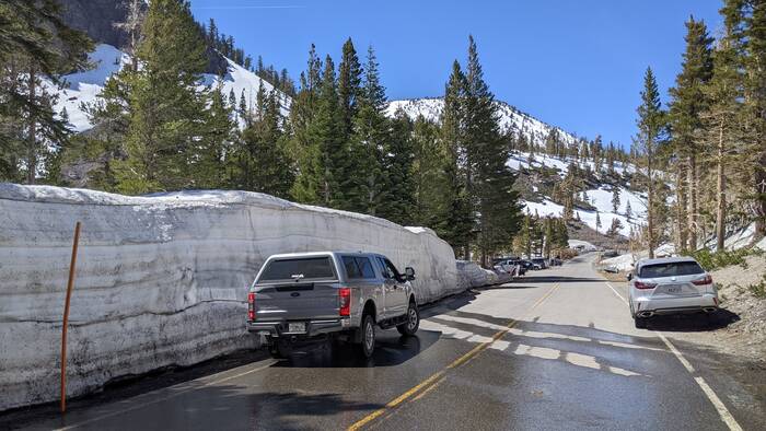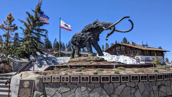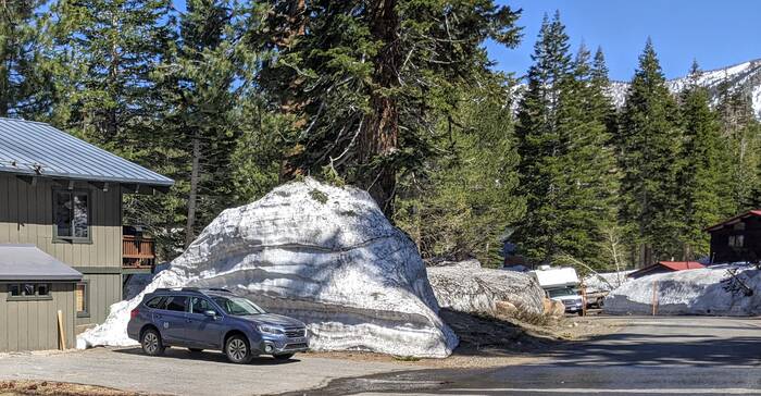 After a picnic lunch along the lakeshore, we drove further north (and higher up) to the town of Mammoth Lakes. Our next camping destination was supposed to be at a campground there, but we received notice a few days ago that our reservation was cancelled due to snow. We decided to take a ride there to check out the epic snow.