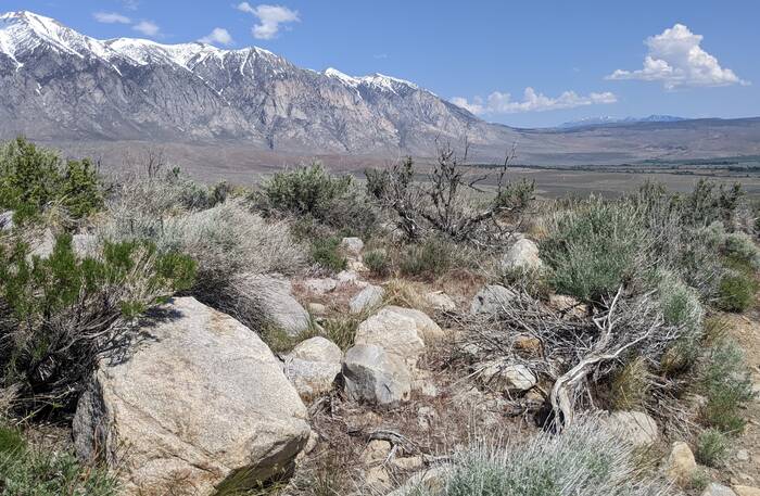 Looking down at the campground. You can just barely see Highway 395 in the distance.