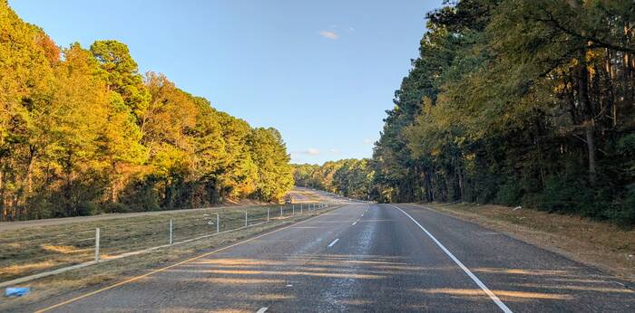 As we neared the eastern region of Texas, we were treated to trees and the occasional hill!