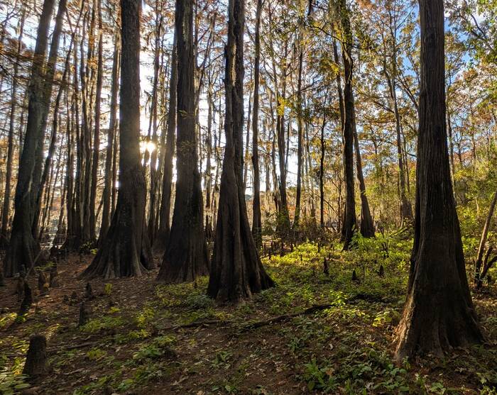 Caddo Lake Fun fact: Bald cypress trees are one of the few conifers that are deciduous. These specimens are sporting their "fall color".