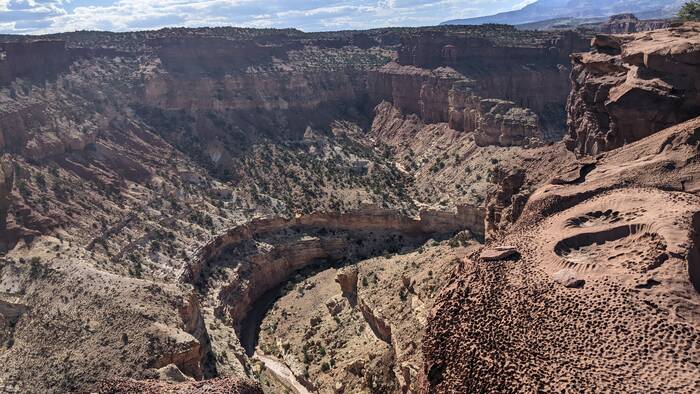 Later that afternoon, we took a short drive to the Gooseneck Scenic Overlook. Here was a dramatic view of a canyon created by Sulphur Creek over the (many, many) years. We had decided that we wanted to hike along/through Sulphur Creek the following day, and we figured we would do some reconnaissance to check it out from an eagle's perspective.