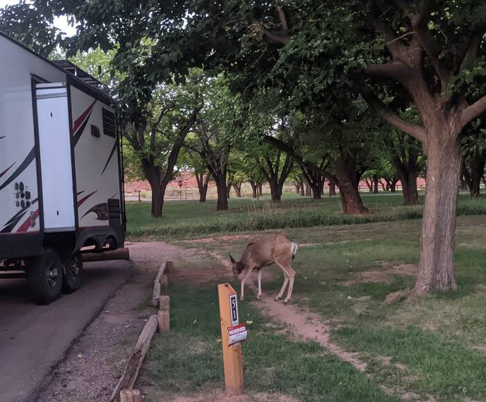 Getting ready to leave early the next morning, Rick was a bit intimidated by the approaching deer.