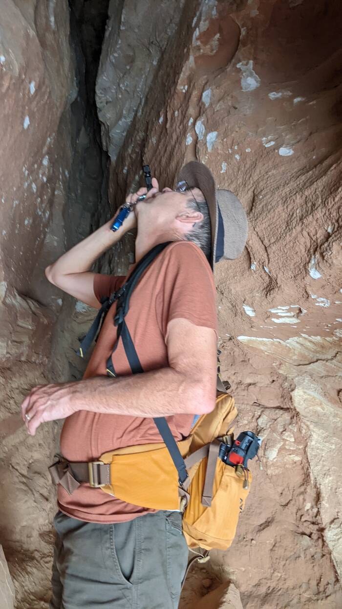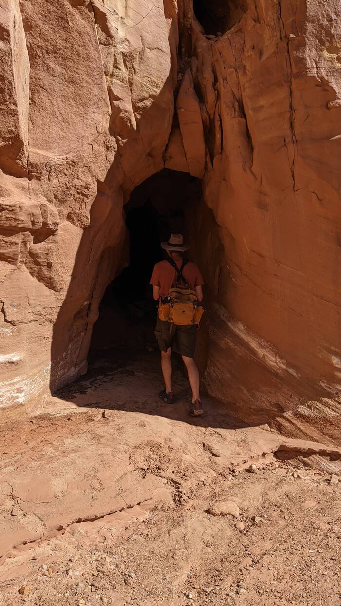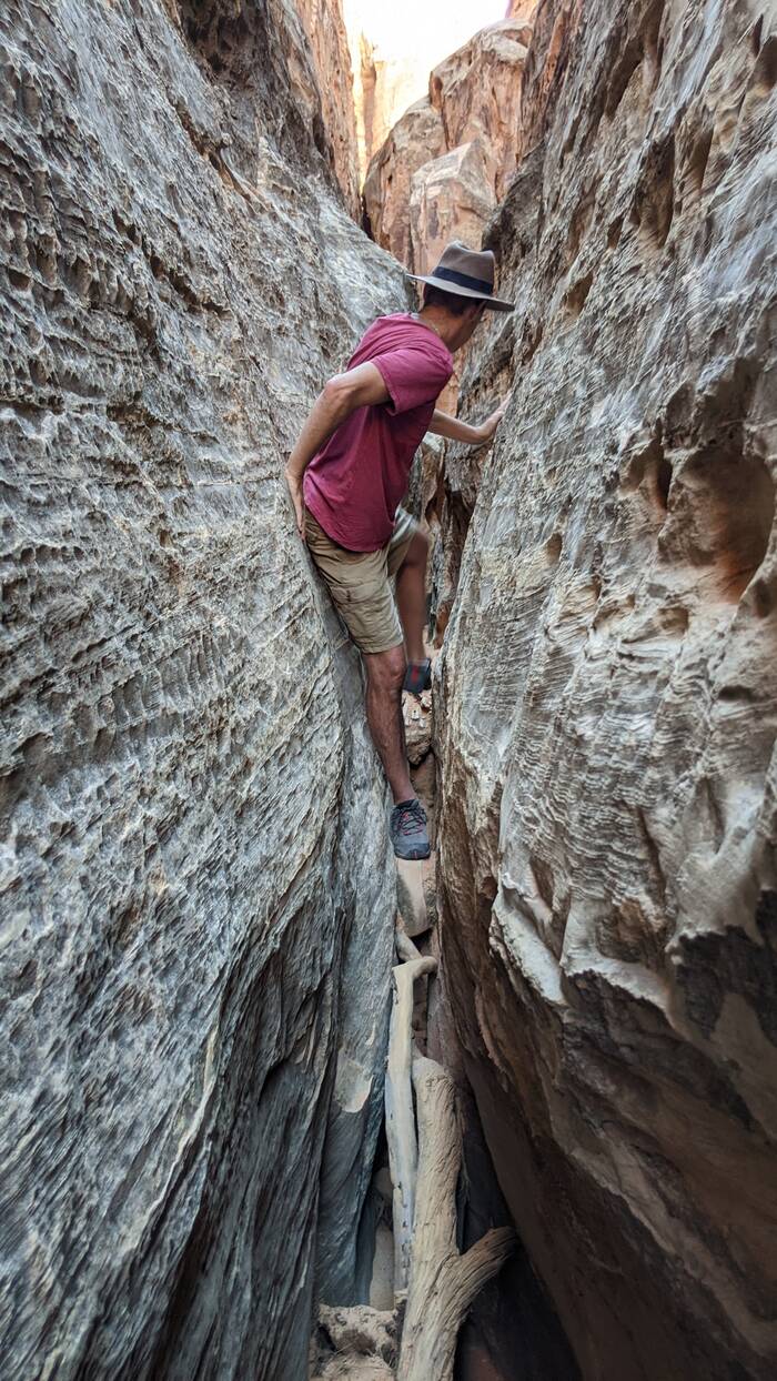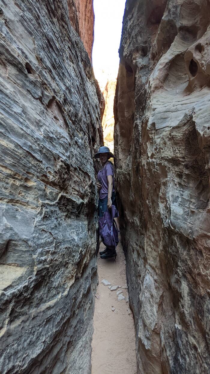 We went back the way we came up, and on the way we stopped at a side slot canyon to check it out. Quite the squeeze getting all the way to the end!