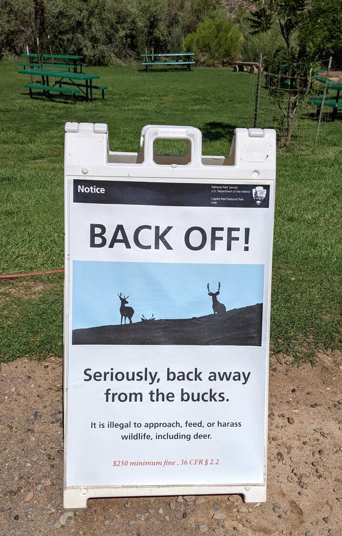 The park service was not subtle about wanting everyone to stay clear of the deer.