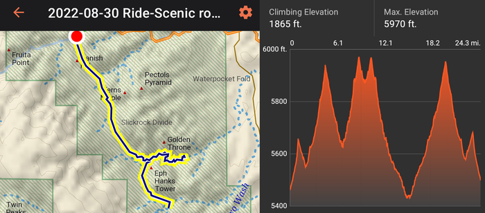 We were starting to get a routine to our days while at Capitol Reef. Each day was getting progressively hotter, so we would head out in the early morning and do something fun while it was reasonably cool. Then we would head back to the camper for lunch and to lounge around, recuperating (or doing something easy) until dinnertime. Evenings were spent enjoying the clear night skies out on the deck until it was time to go to bed. The next day, we would repeat the process. We are really enjoying the retired life!