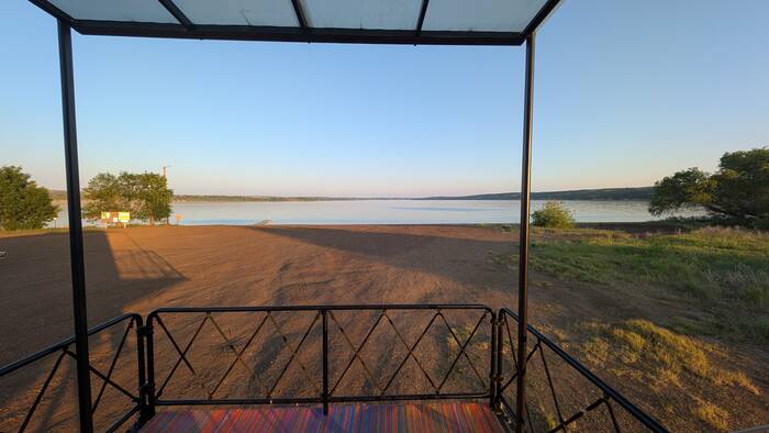 In the 100 degree heat, we settled into a cozy spot with our deck facing the boat launch/beach area. Fortunately, the temperature cooled as night approached and we had a very pleasant evening at this location.