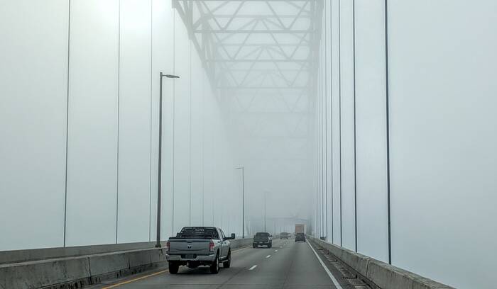 As is often the case in the Ohio River valley, we suddenly encountered fog when we approached the bridge spanning the river.