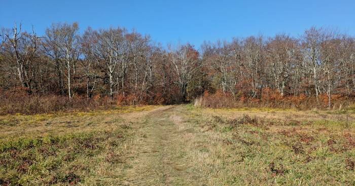 Back near the top of the mountain range, we took the Huckleberry Knob Trail (2 miles total) to one of the several "balds" in the Appalachian Mountains. There is considerable disagreement about the origin of these mountain-top grassy meadows. Some say the Native Americans created them, some say the early settlers cleared the land, and others say they are naturally occurring on some way.