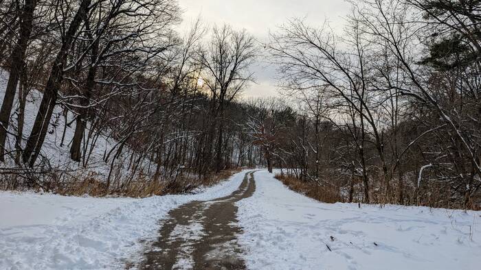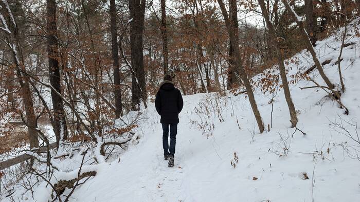 One afternoon before the snow started to melt, we took a pleasant winter walk (at times bordering more on "hike") with Alan at Battle Creek Regional Park.