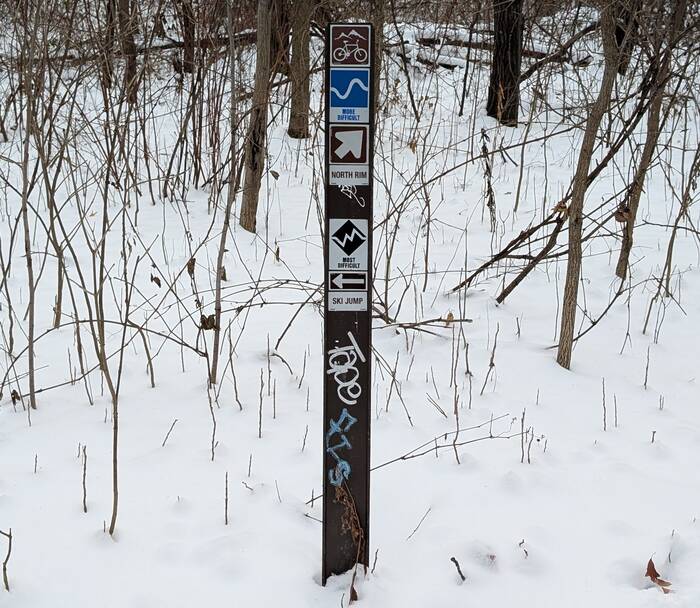 A fork in the path--which way should we go? North Rim or the Ski Jump?