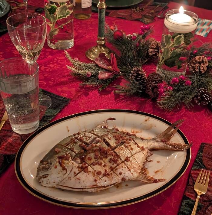 As is now a Koval Christmas Eve Tradition, we partook in the annual Christmas Eve Fish Dinner on--you guessed it--Christmas Eve. This year's fish was particularly attractive.