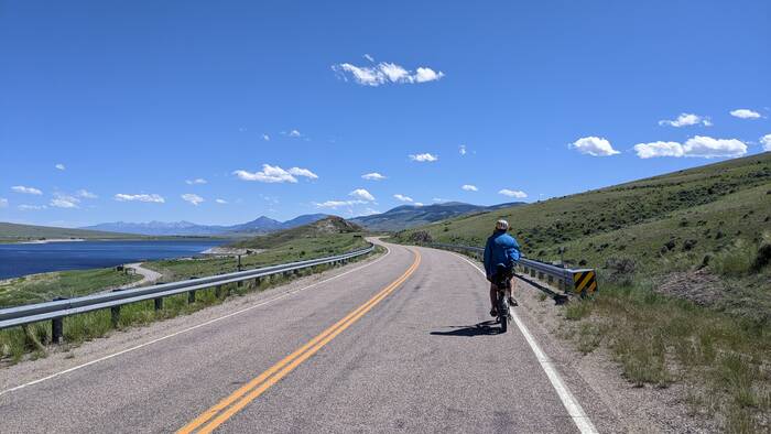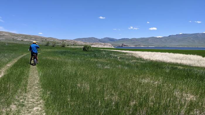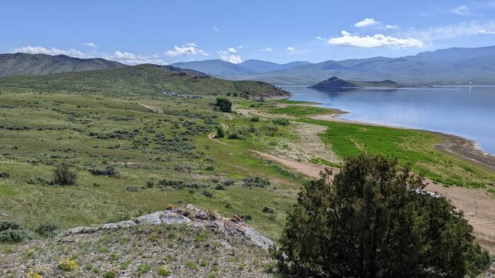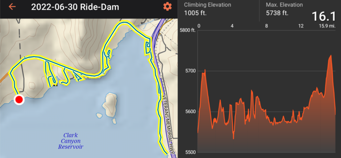 The big outing for the day was taking a ride the opposite way around the reservoir towards the dam and other campgrounds, which totaled up to 16 miles. It also seemed like a good time to see if it was even possible to ride all the way around the reservoir (answer is no - you run into a stream).