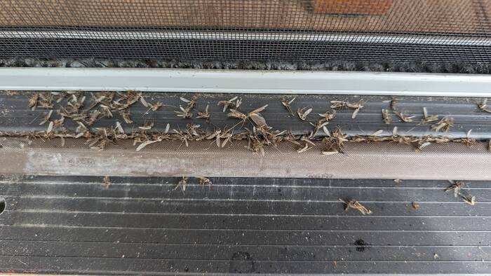 Looks like permethrin really does something. This was the carnage outside our patio door screen the next morning.