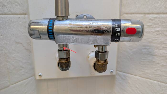 Unfortunately, after Rick had re-assembled the faucet, we discovered that the leak was actually caused by a crack in the pipe, and not a leaky gasket after all. Well, how do we fix that, you might ask? With epoxy of course! And, wouldn't you know, Rick has a collection of every epoxy ever created (that might be a bit of an exaggeration, but not by too much).