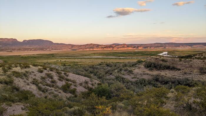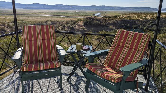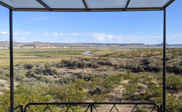 Take a look around at the very nice view with the Rio Grande and mountains in the distance.