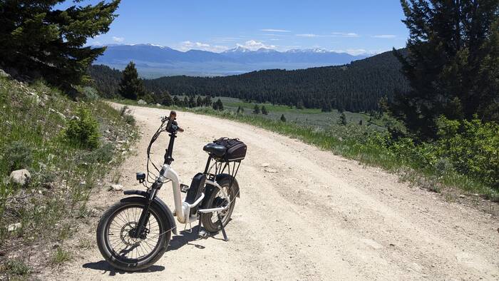 On Sunday, we noticed a brown sign across the main road from our campground that pointed to a creek access/recreation area, so we decided to check it out with our bikes. Turns out it was a really nice gravel road that led to the Beaverhead-Deerlodge National Forest (all up hill-- but no problem with our ebikes!) We ended up riding just over 26 miles, but didn't quite make it all the way to the lake we saw on the map. We were getting a bit tired and we were concerned about our batteries running out. So we stopped short of the lake and turned around. We figured we could bring the truck back the next day with the bikes and ride even further.