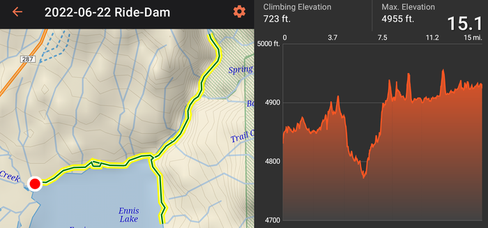 Thursday was the big ride where we went as far as we could around the lake and to the town of Ennis. We rode 25.8 miles that day.